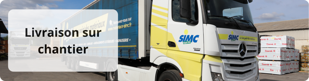 Pour les produits dont la disponibilité est indiquée "de 7 à 9 jours", la livraison sur le lieu de votre choix ne s'effectuera, qu'une fois la marchandise réceptionnée dans l'agence Matériaux SIMC dont dépend votre commande.
