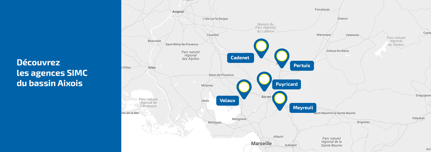 Nos agencesDécouvrez nos agences du bassin Aixois ! En savoir plus Découvrez CaréoLa marque spécialiste Sols, Murs, Salles de bains et Extérieurs chez Matériaux SIMC En savoir plus Découvrez MénéoLa marque spécialiste Menuiserie chez Matériaux SIMC En savoir plusTous nos catalogues par activitéConsultez-les directement sur le site Matériaux SIMC En savoir plusREPPro, où déposez vos déchets ? En savoir plusPanneaux solairesDéballez - Posez - Branchez Cadenet • Meyreuil • Pertuis • Puyricard • VelauxExpertise, proximité et réactivité pour accompagner tous vos projetsProfessionnels du bâtiment ou particuliers, bénéficiez de la force d’un maillage de 5 agences SIMC implantées à Cadenet, Meyreuil, Pertuis, Puyricard, et Velaux, au plus près de vos besoins terrain.Nos équipes vous accompagnent dans tous vos projets de construction, rénovation ou aménagement, avec des conseils personnalisés, une logistique efficace et une large disponibilité produit.Des services pensés pour vousUn libre-service complet : électroportatif, outillage, plomberie, électricité, EPI, peinture, quincaillerie…Le service BricoRetrait dans les agences de Cadenet et Pertuis : commandez en ligne, récupérez dès le lendemainUne cellule grands comptes pour les Majors du BTP : suivi personnalisé, réponse aux appels d’offres, livraison rapideChoisissez la proximité et le conseil sur-mesure. Choisissez le réseau Matériaux SIMC.Les spécialités en + dans ces agences Carrelages, sols, murs salles de bains et extérieurs Plus d'informations Spécialiste de la menuiserie Plus d'informations TP | AEP Plus d'informations La Responsabilité Élargie des Producteurs de Produits et Matériaux de Construction du Bâtimentpour contribuer à la gestion des déchetsLa collecte des déchets s’organise au sein de nos agences ! Plus d'information sur la REP Rendez-vous en agenceCADENETZ.A. Les Meilleres, 84160 CADENETTel. : 04 90 68 15 28 Voir l'agence MEYREUILQuartier Chapus, Chemin Jardins Miniers 13590 MEYREUILTel. : 04 42 58 31 99 Voir l'agence PERTUISZAC du Terre du Fort, 949 route d’Aix en Provence 84120 PERTUISTel. : 04 90 79 58 97 Voir l'agence PUYRICARD3490 Route d’Avignon La Calade, 13540 PUYRICARDTel. : 04 42 17 04 04 Voir l'agence VELAUX141 Avenue du Général Leclerc, 13880 VELAUXTel. : 04 42 87 96 29 Voir l'agence Demander un devisMerci de bien vouloir préciser votre demande.Civilité MrMmeMlleNom Prénom E-mail Téléphone Je suis... ProParticulierClient SIMCPas encoreVotre projet ConstructionDevisRénovationAutreAgence la plus proche —Veuillez choisir une option—CadenetMeyreuilPertuisPuyricardVelauxCommune / code postal du chantier Message Une description détaillée nous aidera à diriger votre demande vers les conseillers les plus compétents pour vos projets spécifiques. Les données recueillies à partir de ce formulaire nous sont nécessaires pour vous adresser des informations sur nos produits et nos services et nos offres commerciales. Elles ne seront pas utilisées à d’autres fins sans votre accord préalable. Elles sont enregistrées et transmises aux services internes de SIMC, responsable du traitement, et, le cas échéant, aux prestataires qui les accompagnent en qualité de sous-traitant et avec les autres sociétés de notre groupe (www.groupe-samse.fr). Conformément à la réglementation en vigueur, vous disposez d'un droit d'accès permanent, de rectification, d’effacement, d’opposition, de portabilité et de limitation du traitement s’agissant des informations vous concernant. De plus, toute personne concernée estimant que ses droits ne sont pas respectés peut adresser une réclamation à la CNIL. Plus de détail sur https://www.cnil.fr. Pour plus d’informations sur la gestion de vos données personnelles ainsi que sur vos droits et la manière de les exercer, vous pouvez consulter notre politique données personnelles.
